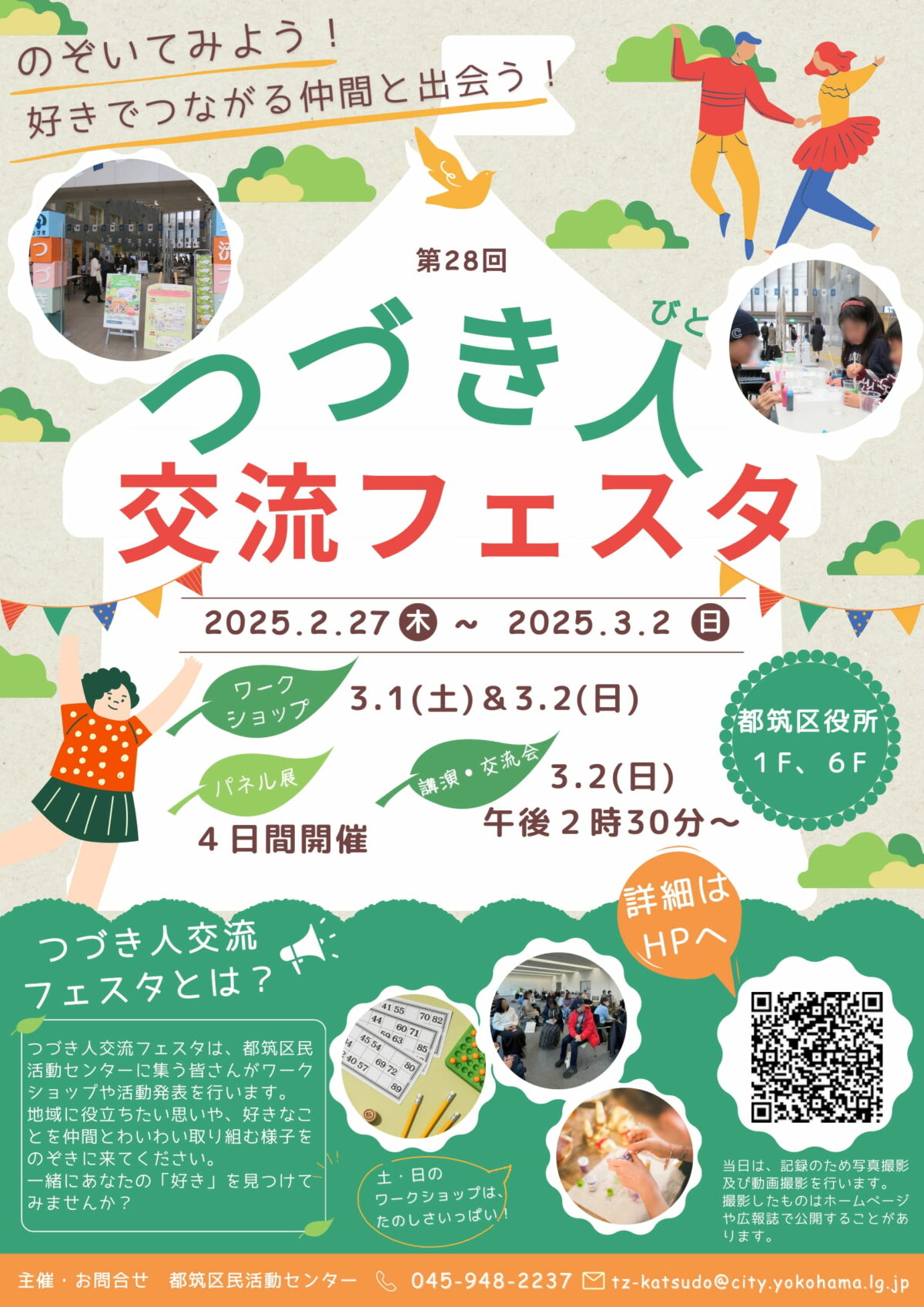 都筑区民活動センター主催で「つづき人交流フェスタ」が開催されます。今回のテーマは『のぞいてみよう!好きでつながる仲間と出会う』です。