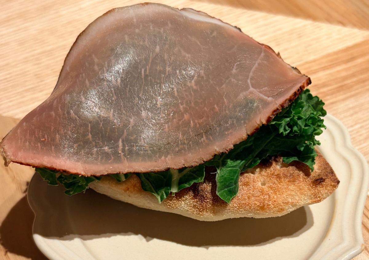 生ハムの塩気がアクセントになったふわふわの焼きたてフォカッチャ。