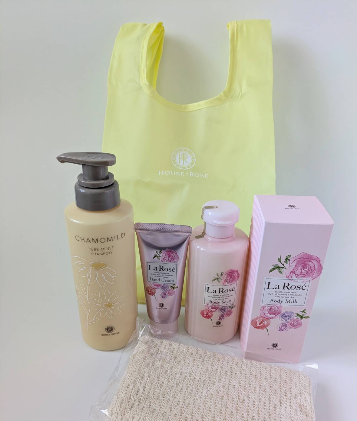 内容:シャンプー、ボディミルク、ボディソープ、ハンドクリーム、ボディタオル、エコバッグ