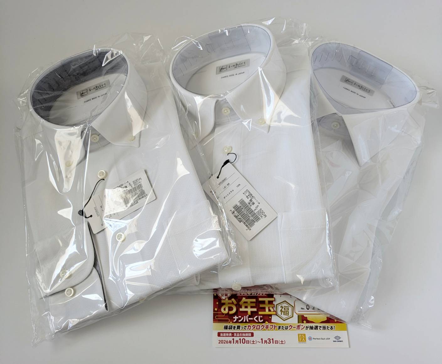 アイロンいらずの「i-Shirt(アイシャツ)」が3枚税込8,800円と破格の安さで販売していたので今年も購入。リピ買いです。お年玉ナンバーくじももらえました。1月10日(土)に当選発表です。カタログギフトかクーポンが当たるそうですよ。