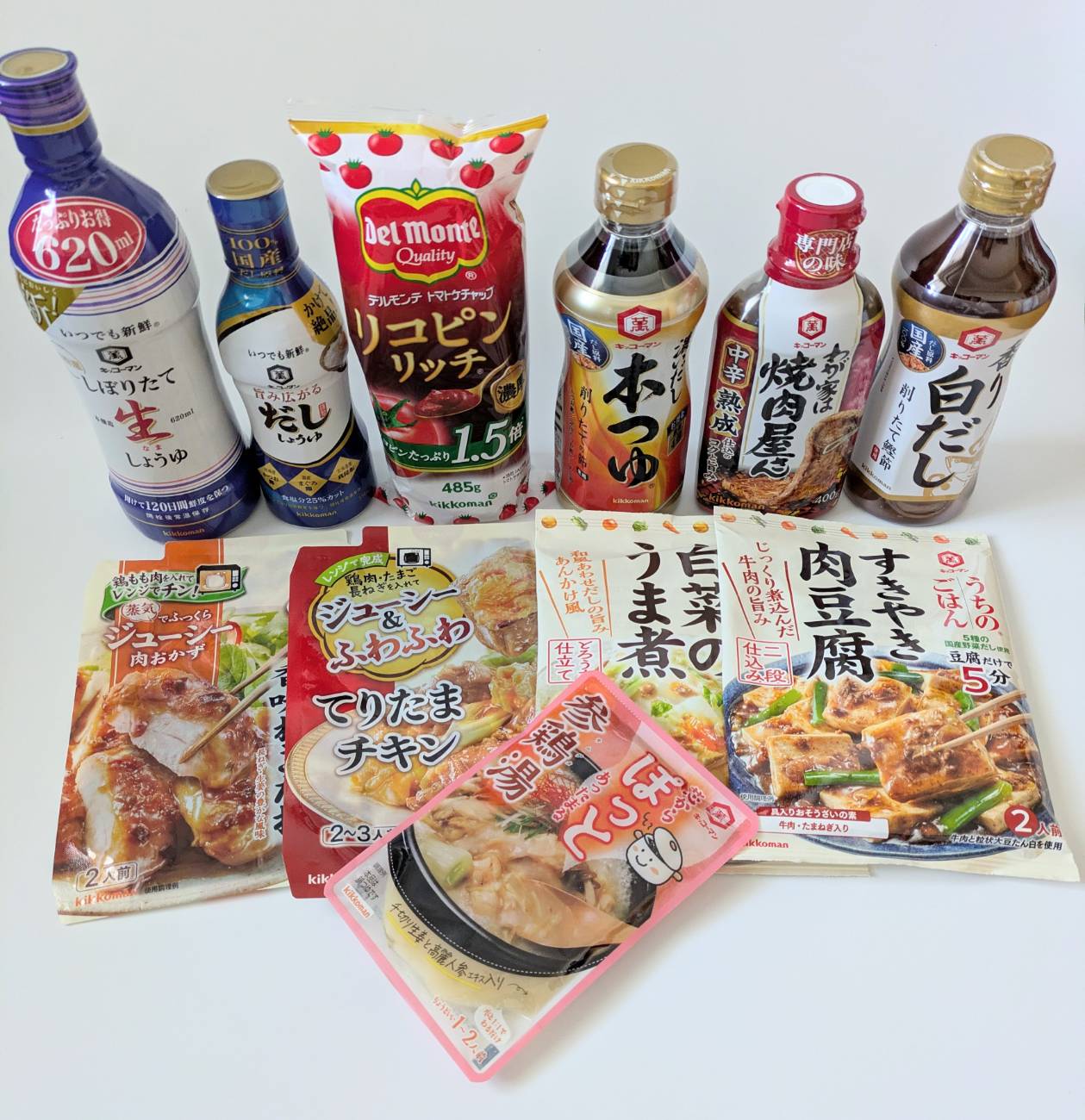 内容:醤油、ケチャップ、焼き肉のたれ、本つゆ、白だしなど11種類。
