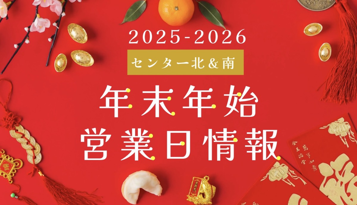 早いもので、今年ももうすぐ終わりますね。年末年始は各ショッピングセンターの営業時間が通常と異なりますので、出かけるときには要注意です。2025年と傾向が異なるショッピングセンターもあります。