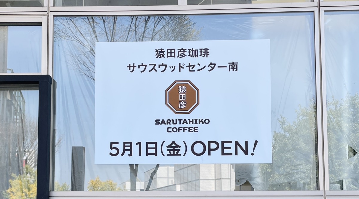センター南、サウスウッド1階に、スペシャルティコーヒー専門店「猿田彦珈琲 サウスウッド センター南」が2026年5月1日(金)にオープン予定です。