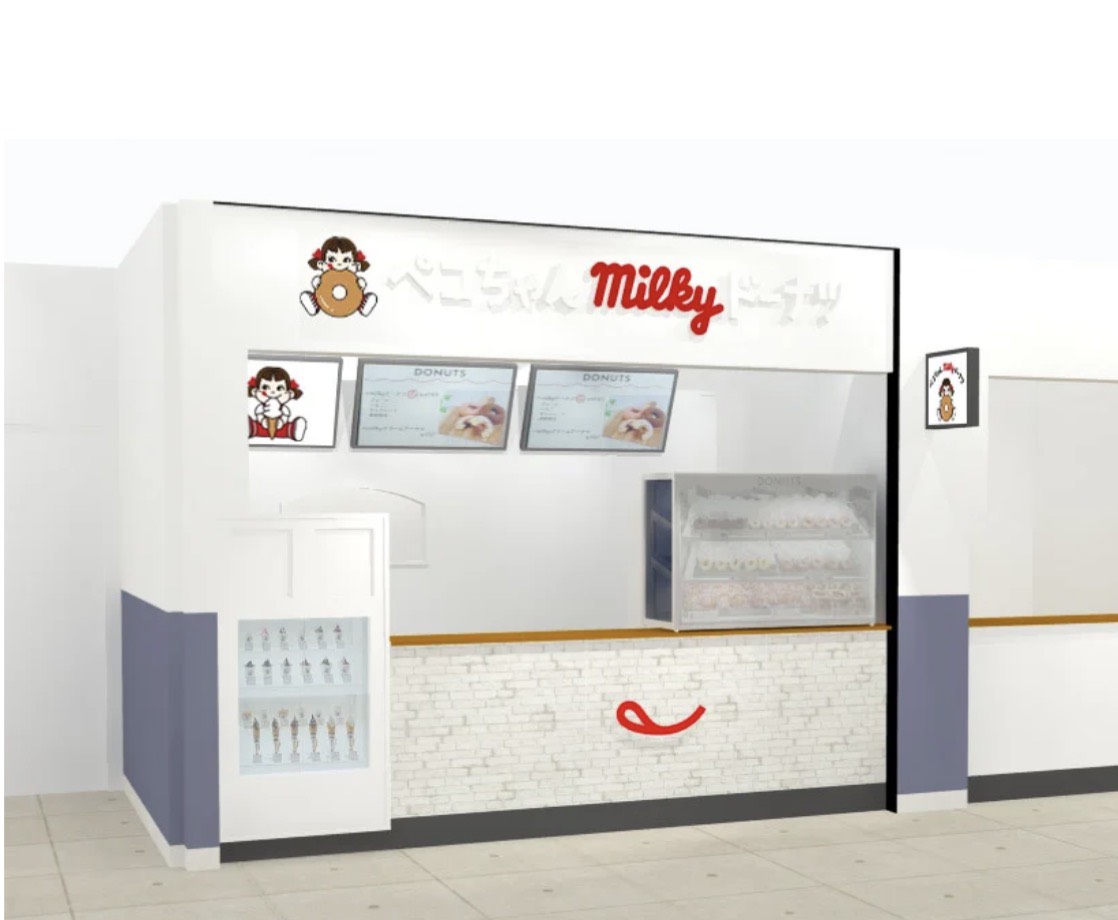 不二家が展開する「ペコちゃんmilkyドーナツ」は、ミルキーの優しいミルク風味をイメージしたドーナツ専門店ブランド。