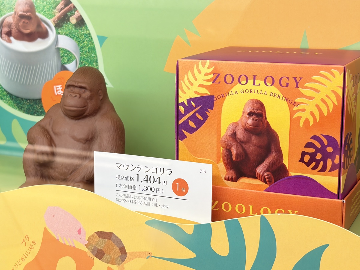 マウンテンゴリラのチョコレートは、センター北で親しまれているマスコット「都筑まもるくん」を思い起こさせるような佇まいです。