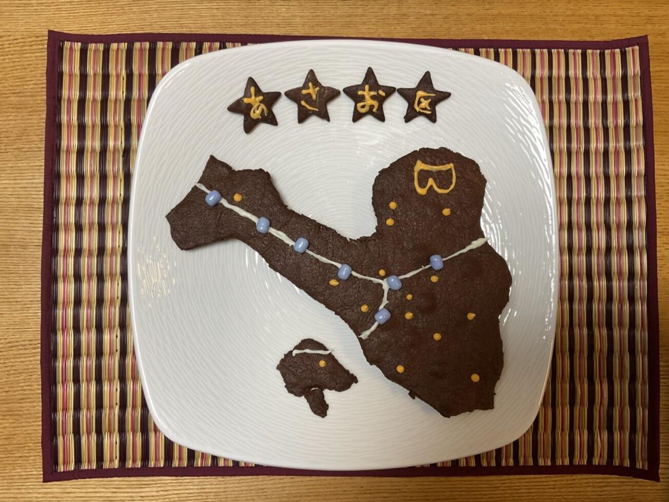 『あさお区』という文字や、麻生区のマーク、小学校の場所をチョコペンで書くのが楽しかったです。