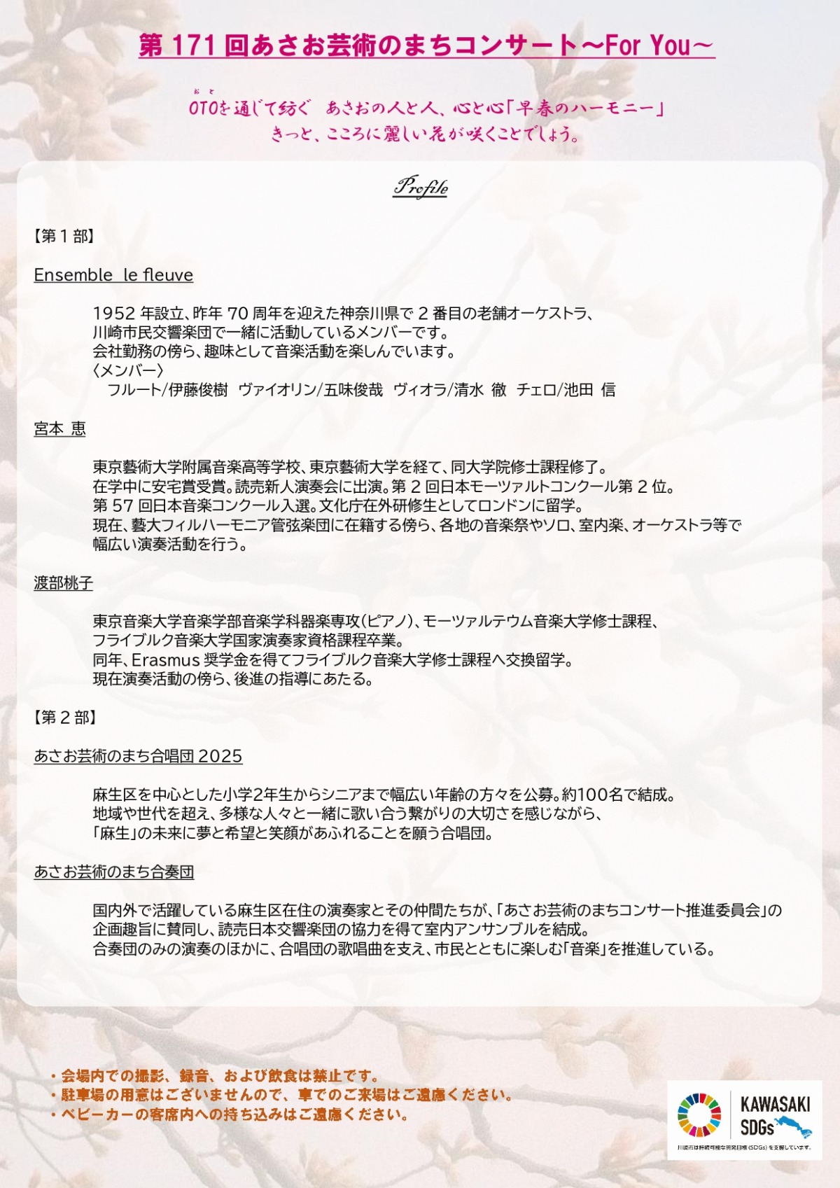 主催:あさお芸術のまちコンサート推進委員会、川崎市麻生区