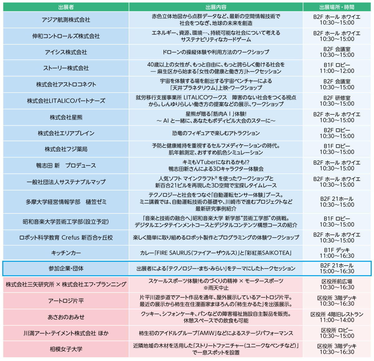 「新百合トウェンティワンビル」では、VR体験やAIとのインタラクションコーナー、麻生区にある企業の最新技術体験、ワークショップなど様々なブースが出展します。