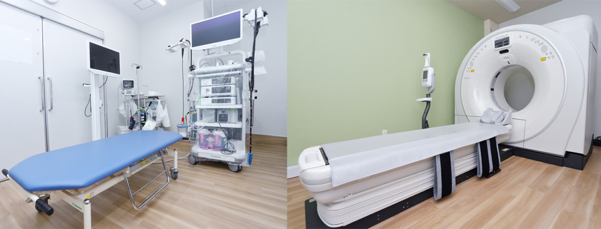 当院ではオールラウンドに診て、症状の候補を絞り込むための検査を行っています。採血、レントゲン、エコー、CT、胃・大腸内視鏡といった検査を保険内で行うことができ、「これじゃない」という否定診断も迅速にできます。