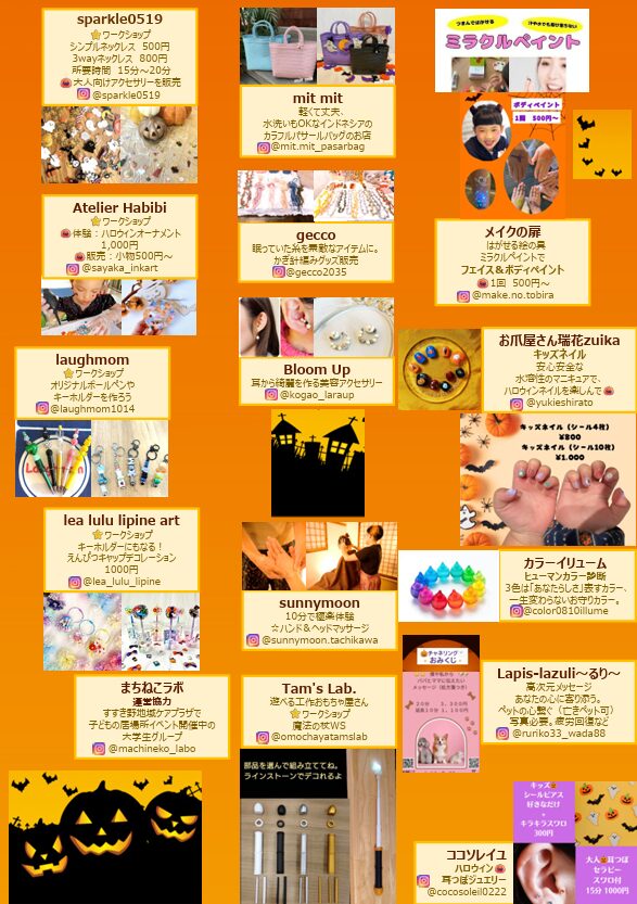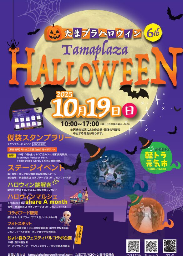 イベント内容:仮装スタンプラリー、ステージイベント、ハロウィン謎解き、ハロウィンマルシェ produced by share A month 、コラボフード販売、フォトスポット、ちょい飲みフェスティバルコラボ企画、軽トラ元気市