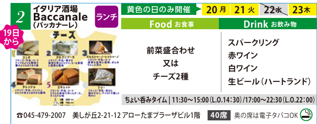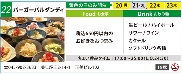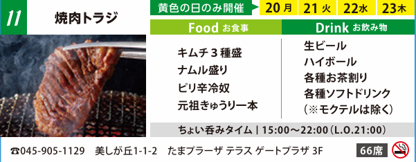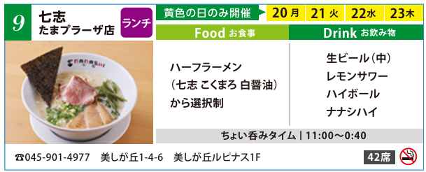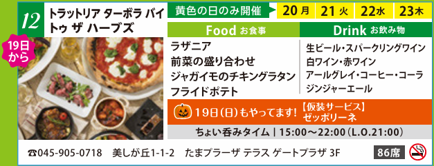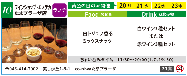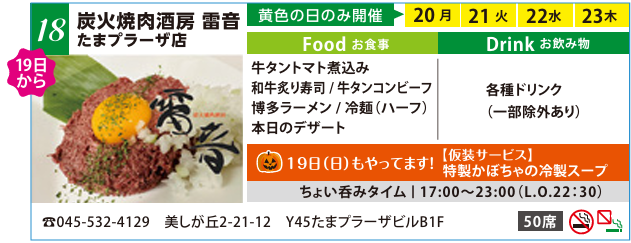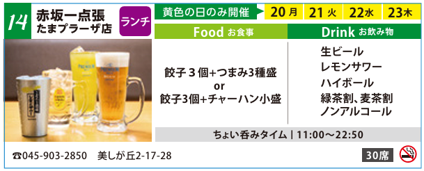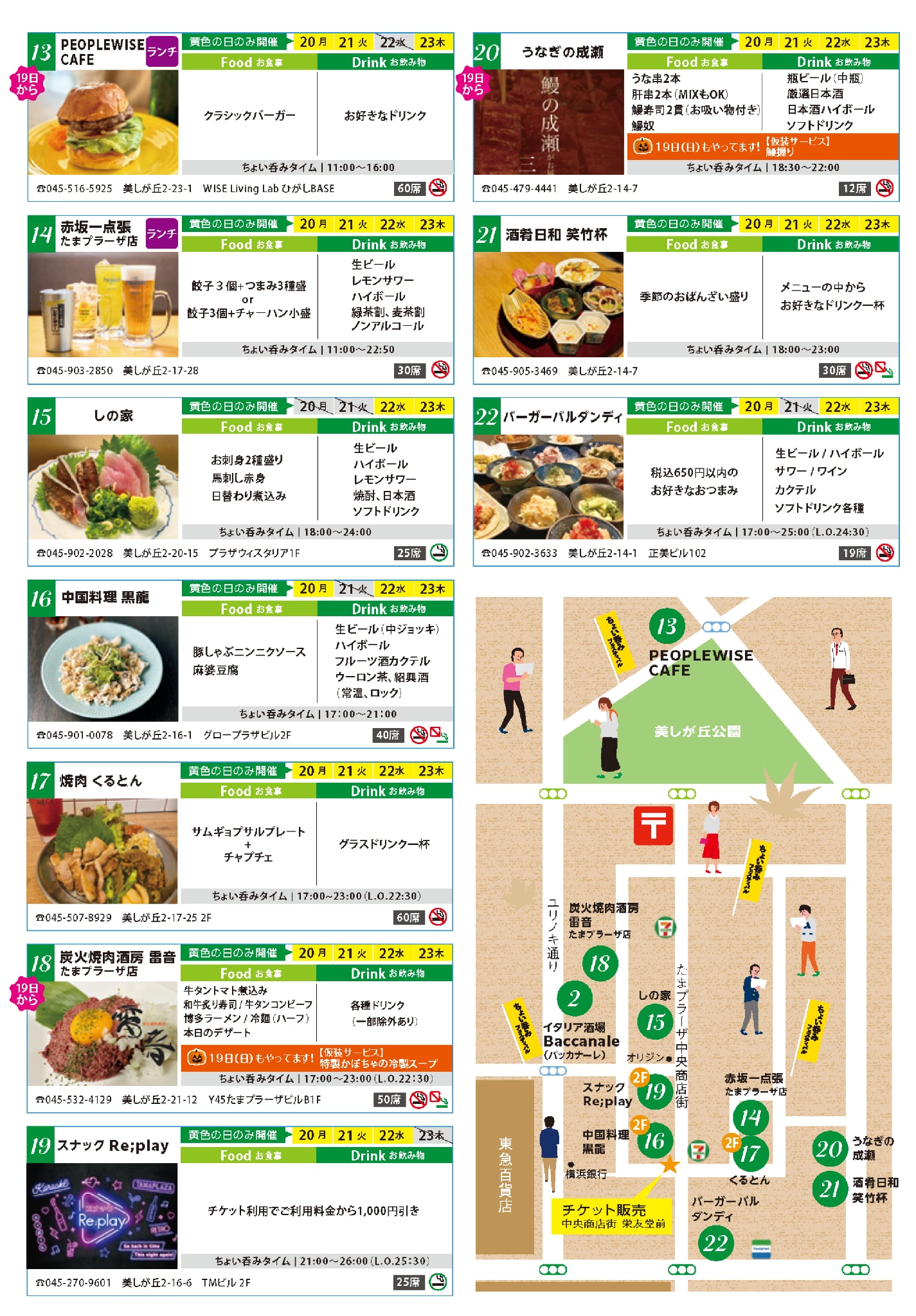 場所:たまプラーザの飲食店 22店舗(たまプラーザ連合商店会加盟店舗、たまプラーザ テラス)