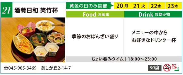 内容:ちょい呑みチケット1枚で対象店舗で1フード1ドリンクを楽しめる。