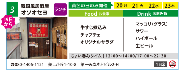 参加費:3000円(ちょい呑みチケット3枚綴り)
