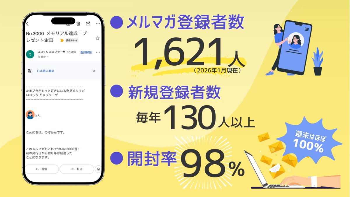たまプラーザの情報を知りたい方がメルマガに登録されているため、届けたい方に情報が届きやすいのが大きな特長です。